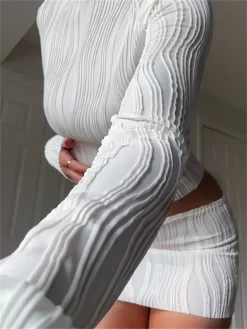 Women Autumn Tops Ribbed Knit Solid Color Shirts Long Sleeve Slim Fit Crop Tops Korean Fashion Casual Sweater Y2K Clothes